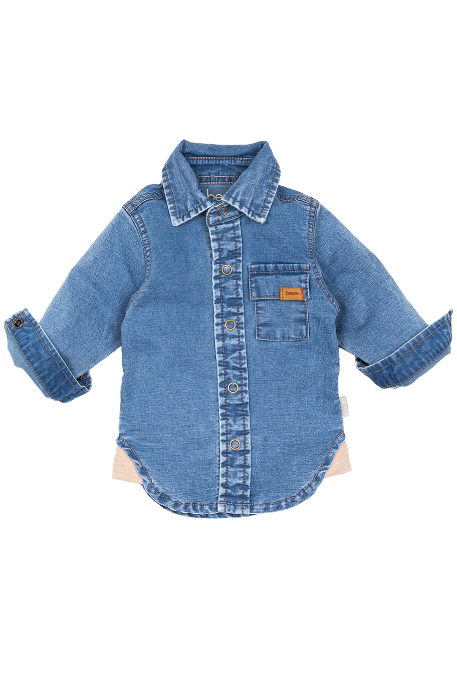 Een mooie spijkerblouse van Bess. De blouse is gemaakt van biologisch katoen. De blouse heeft knopen bij de polsen, waardoor de blouse makkelijker aan te trekken is. Het sluit met drukknoopjes aan de voorkant.